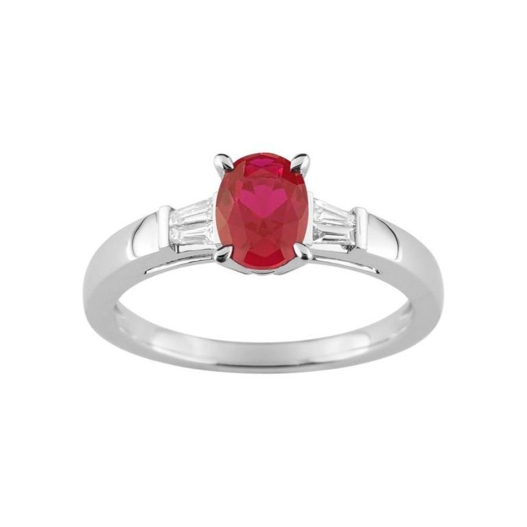 Anel Christian Bernard em ouro branco 18k (18)7VG024GRB com diamantes de 0,10ct e rubi