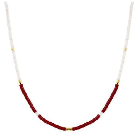 Argyor-MRM (AC)432281 Colar com corrente de aço dourado com pedras vermelhas bicolores brancas. Colar feito em Aço Dourado. Fecho de mosquetão. Design de corrente com pedras brancas e vermelhas bicolores. Certificado de autenticidade e garantia de qualidade dos materiais de fabricação. Ref. (AC)432281