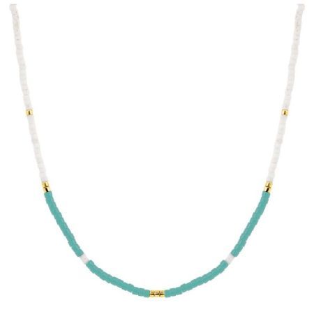 Colar com corrente de aço dourado Argyor-MRM (AC)432280 com pedras turquesas brancas e bicolores