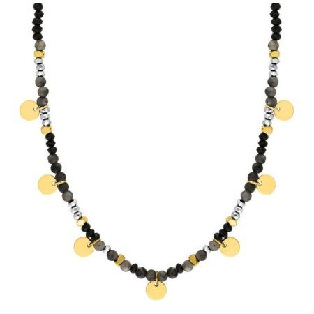 Colar de aço dourado com pedras pretas e pingentes Argyor-MRM (AC)432204. Colar feito em Aço Dourado. Fecho de mosquetão. Design em pedra preta com pingentes. Certificado de autenticidade e garantia de qualidade dos materiais de fabricação. Ref. (AC)432204