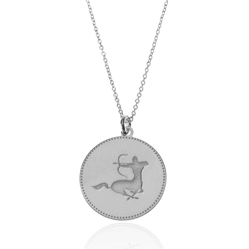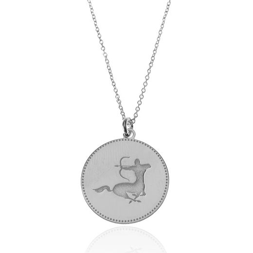 Colar em Prata 54+5cm CO00439RH Sagitário Zodíaco. Colar feito em prata esterlina 925 banhada a ródio. Fechamento próximo. Desenho do zodíaco Sagitário. Medidas da corrente 54+5cm. Medidas do pingente 18mm. Certificado de autenticidade e garantia de qualidade nos materiais de fabricação. Ref. CO00439RH