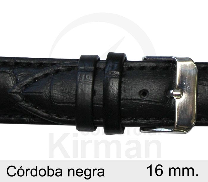 Correa Reloj Piel 16x80/120mm 132115N Córdoba Negra Cierre Hebilla Acero. Correa de reloj fabricada en piel. Diseńo Córdoba negra cierre de hebilla de acero. Medida 16x80/120mm. Producto de excelente calidad, con garantía contrastada que asegura su fiabilidad y durabilidad. Ref 132115N