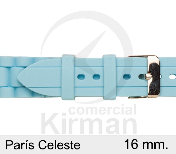 Correa Reloj Silicona 16x75/120mm 135149/16CE París Celeste Cierre Hebilla