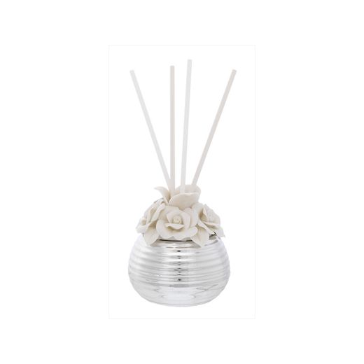Difusor Fragancia Latón 6.5cm 2075-03P Plateado Detalle Floral Beige