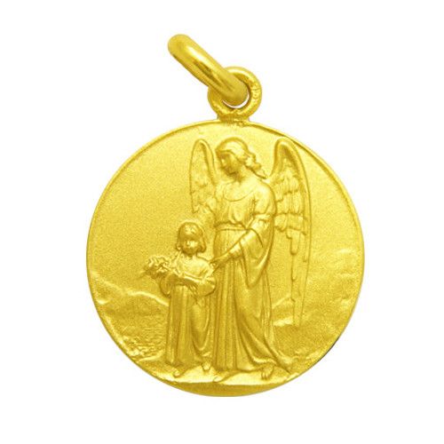 Medalla Oro 18kts Angel De La Guarda Bisel 12mm M1/1/14/12