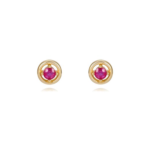 Pendientes Plata Dorada 06mm PEZ1493DOZR Circonita Redonda Rubí