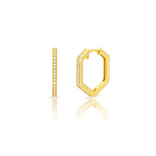 Pendientes Plata Dorada 18mm PEZ1609DO14 Hexagono Circonitas