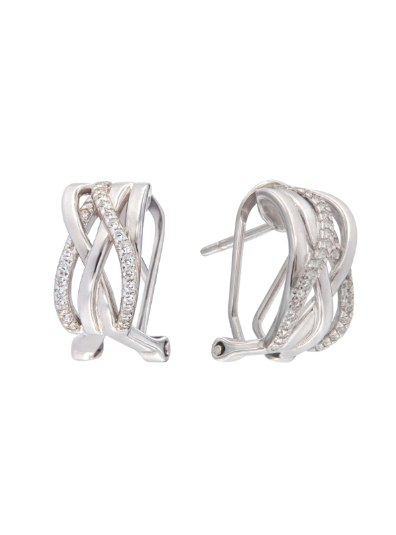 Pendientes Plata Mujer PPOM50 Bandas Cruzadas Circonitas. Pendientes fabricados en plata de ley 925. Diseño de bandas cruzadas con circonitas. Cierre omega. Certificado de autenticidad y garantía de calidad en los materiales de fabricación. Ref PPOM50