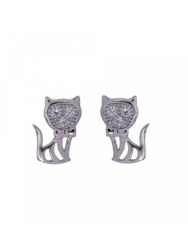 Pendientes Plata Mujer PPR 553 Gato Circonitas