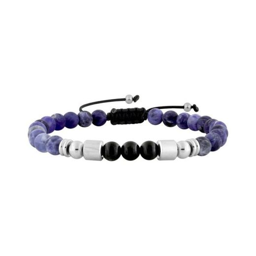 Pulseira de macramê em aço dourado com pedras pretas e azuis Argyor-MRM (AC)403370