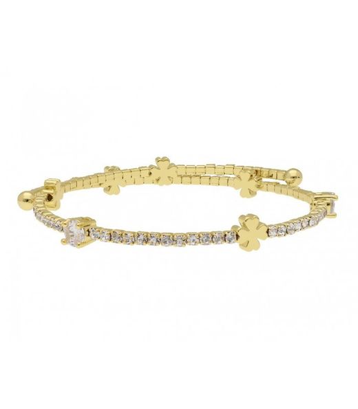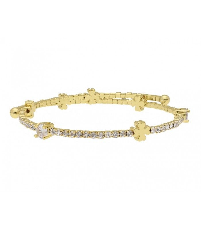 Pulseira feminina Liska em aço dourado BL022BR-D com zircônia e trevo