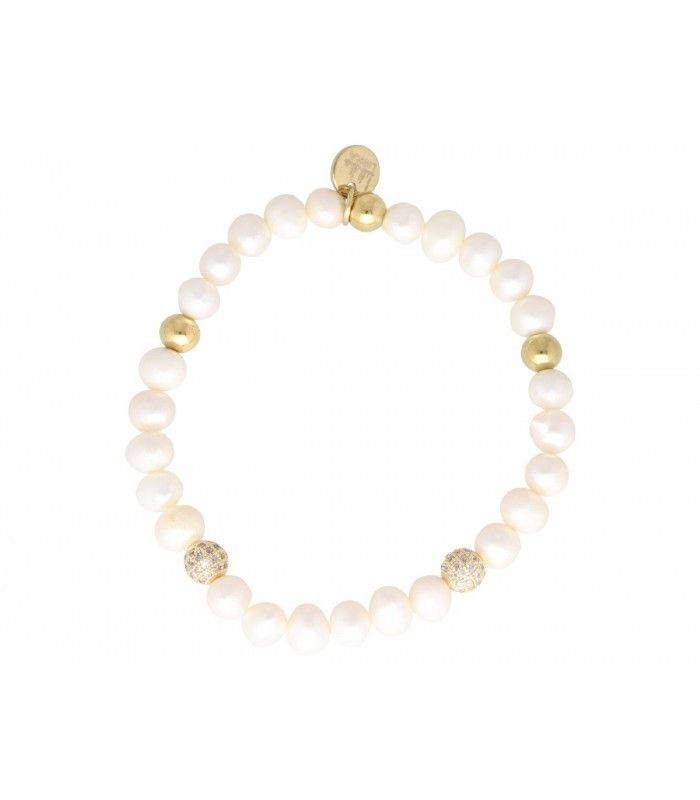 Pulseira feminina Liska em aço dourado SHA236 com pérolas
