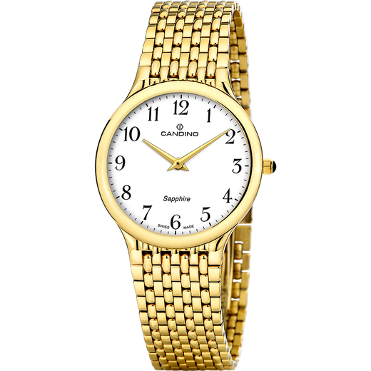 Reloj Candino Hombre C4363/1 Acero Dorado Analógico. Caja de acero de 36mm de diámetro. Bisel dorado. Brazalete de acero inoxidable dorado. Cierre desplegable. Esfera blanca. Cristal zafiro. Movimiento quartz. Swiss Made. Sumergible 30m. Peso 60gr. 3 años de garantía. Ref C4363/1