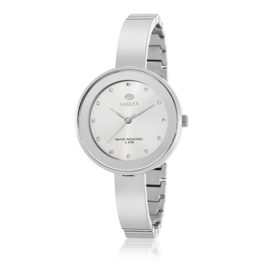 Reloj Marea Mujer B54143/1 Acero Analógico. Caja de acero de 35mm de diámetro. Bisel rose. Brazalete de acero inoxidable. Cierre desplegable. Esfera blanca. Cristal mineral. Movimiento quartz. Sumergible 50m. 3 años de garantía. Ref B54143/1